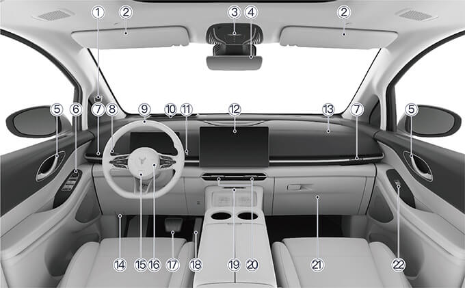 | ① 驾驶监测摄像头 | ⑫ 智能娱乐导航系统 |