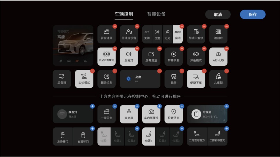 您可以将常用的车辆控制开关、智能设备开关集合到控制中心,操作车辆更便捷。