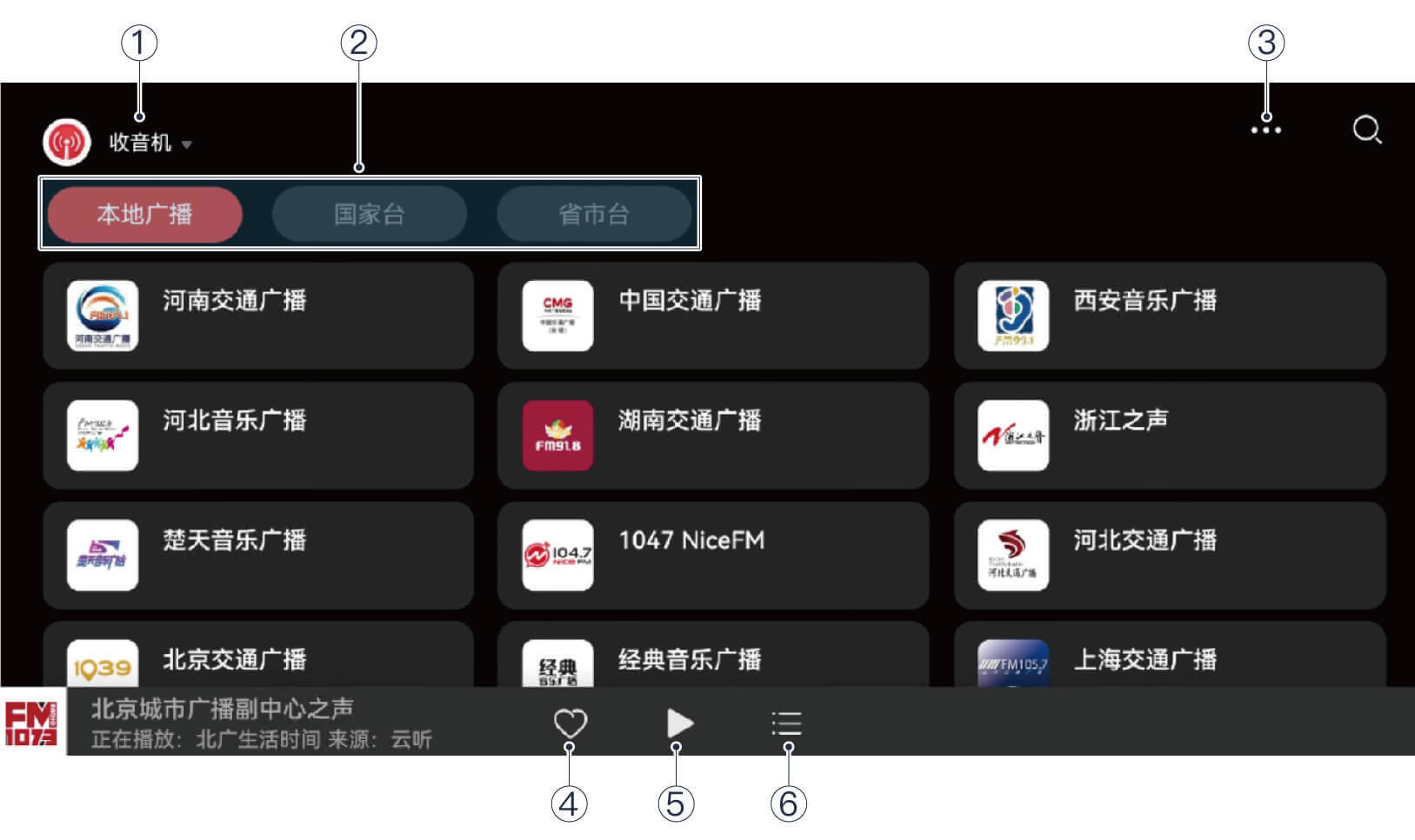 在中控屏应用与服务 > 应用中心界面,进入收音机应用。