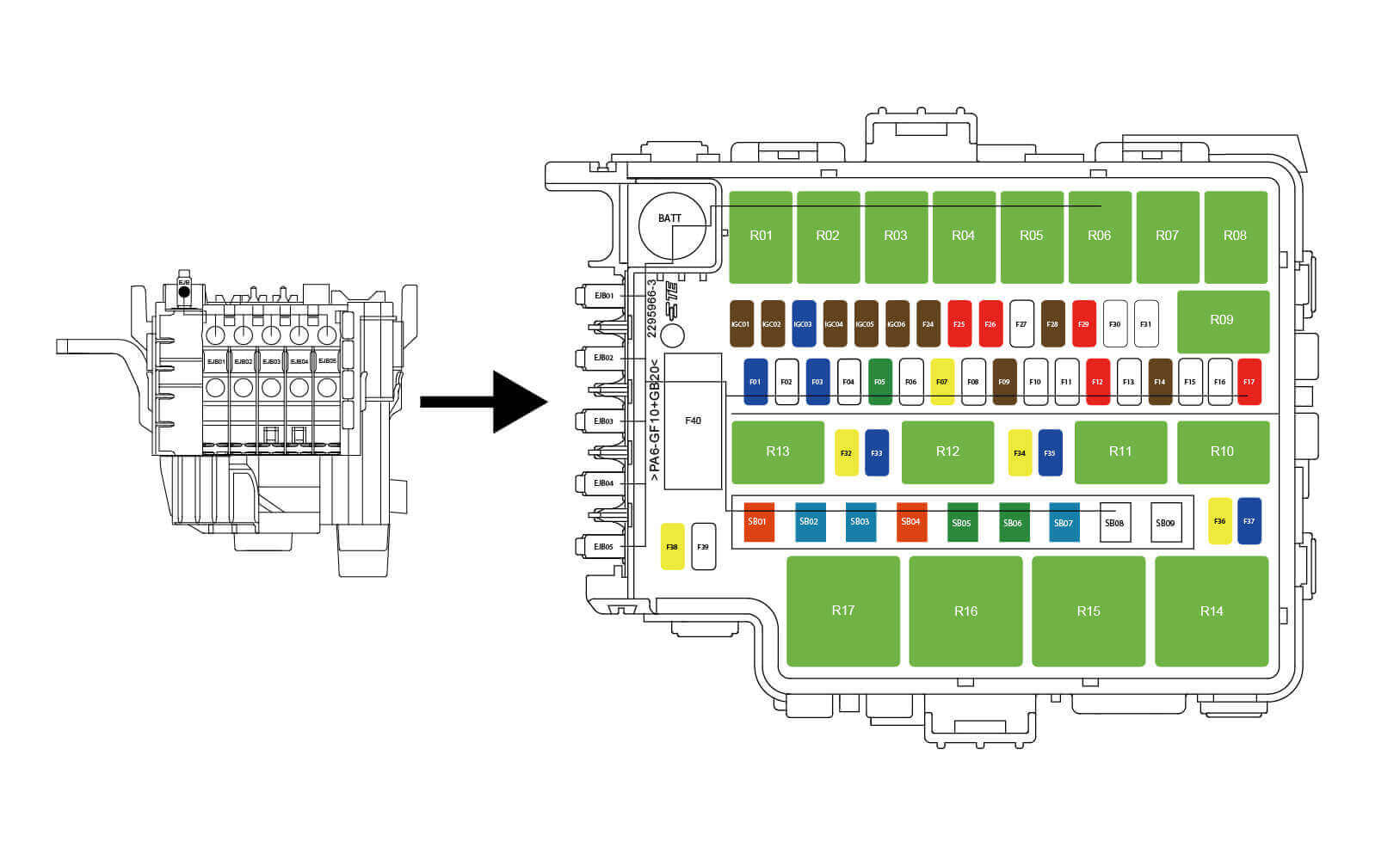 | EJB03 | 80A | 电子风扇保险丝 |