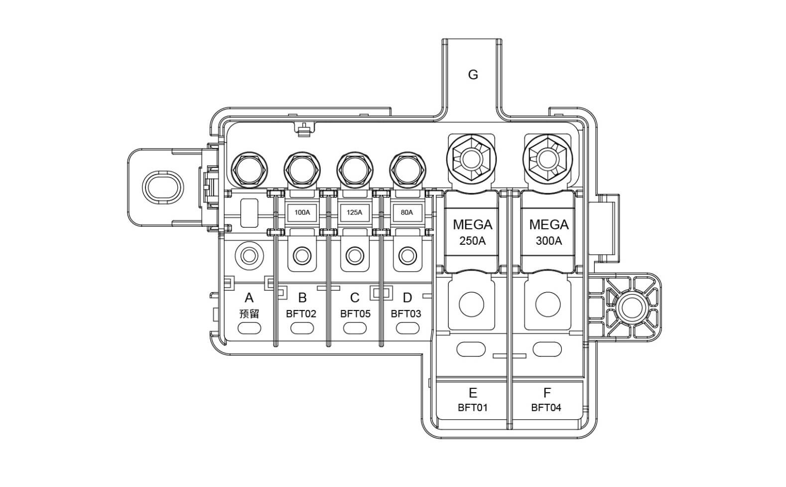 | BFT01 | 250A | 前舱电器盒保险丝保险丝 |