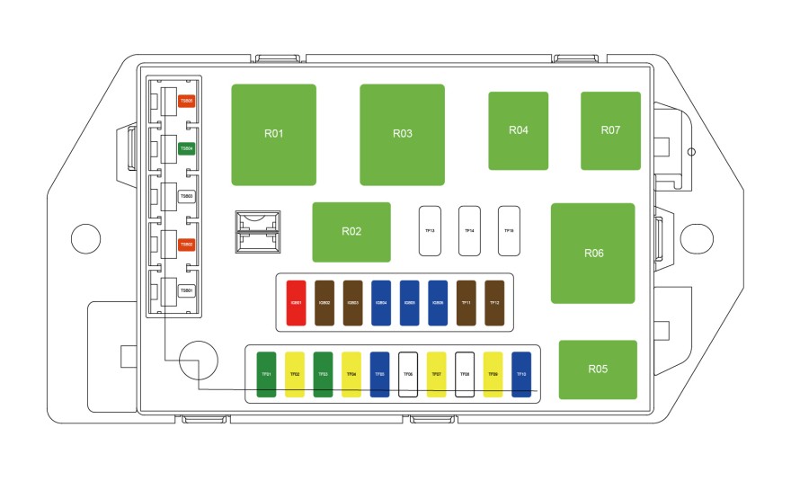 | R01 | IG1继电器 | R06 | 受控保险丝继电器 |