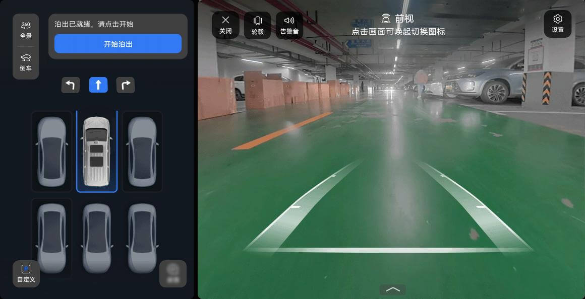 驾驶员选择泊出方向后,踩住制动踏板同时点触“开始泊出”,根据仪表屏提示松开制动踏板和方向盘。