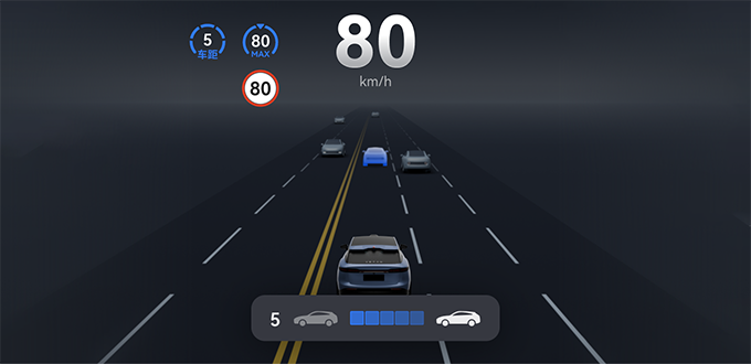调节跟车时距时,组合仪表屏底部会显示目标跟车时距挡位,该信息会在显示数秒后消失。