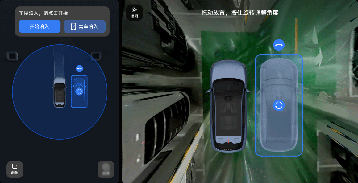 点触屏幕目标位置或拖拽车位框以调整位置,拖动车位框顶部的旋转图标以调整角度。