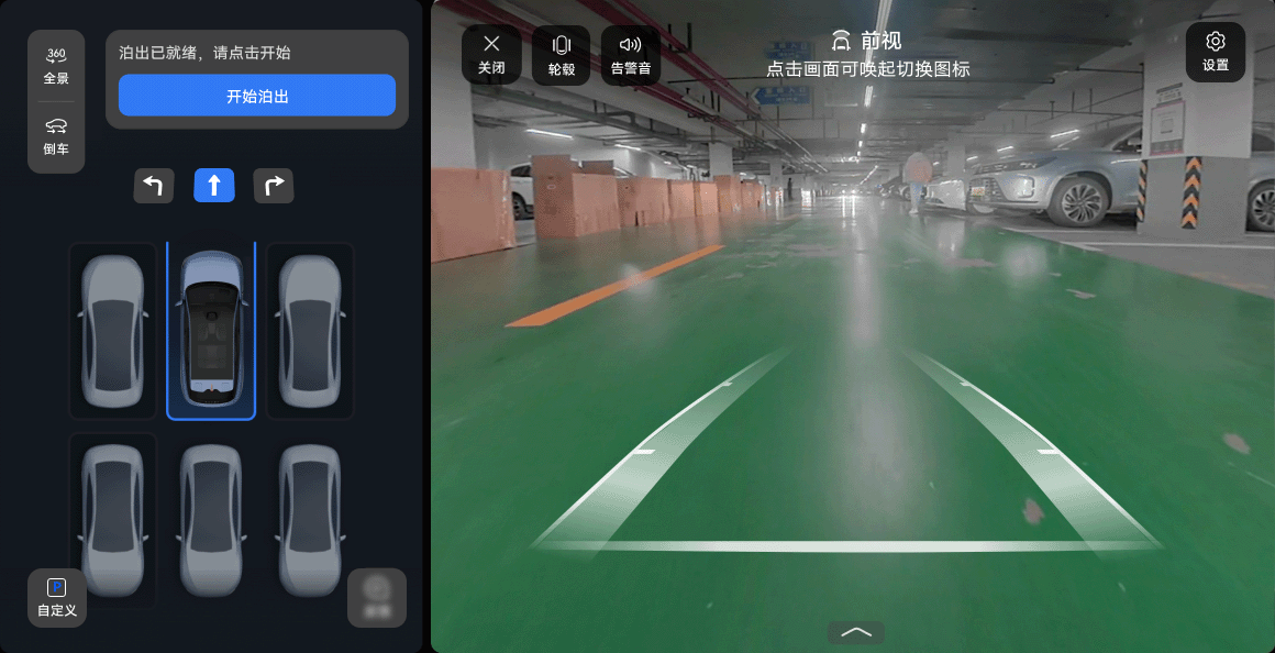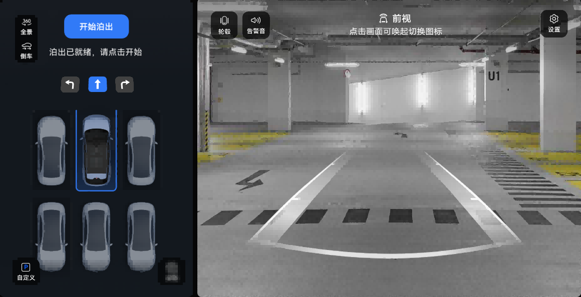 驾驶员选择泊出方向后,踩住制动踏板同时点触“开始泊出”,根据组合仪表屏提示松开制动踏板和方向盘。