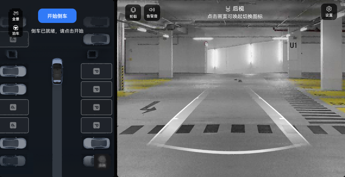 - 踩住制动踏板,点触“开始倒车”。