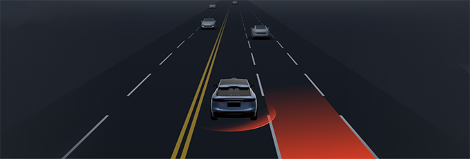 如果此时中控屏正在显示预警侧的侧后方影像(360°全景环视影像),则对应的影像画面底部会显示红色光晕,以提醒驾驶员注意盲区风险。