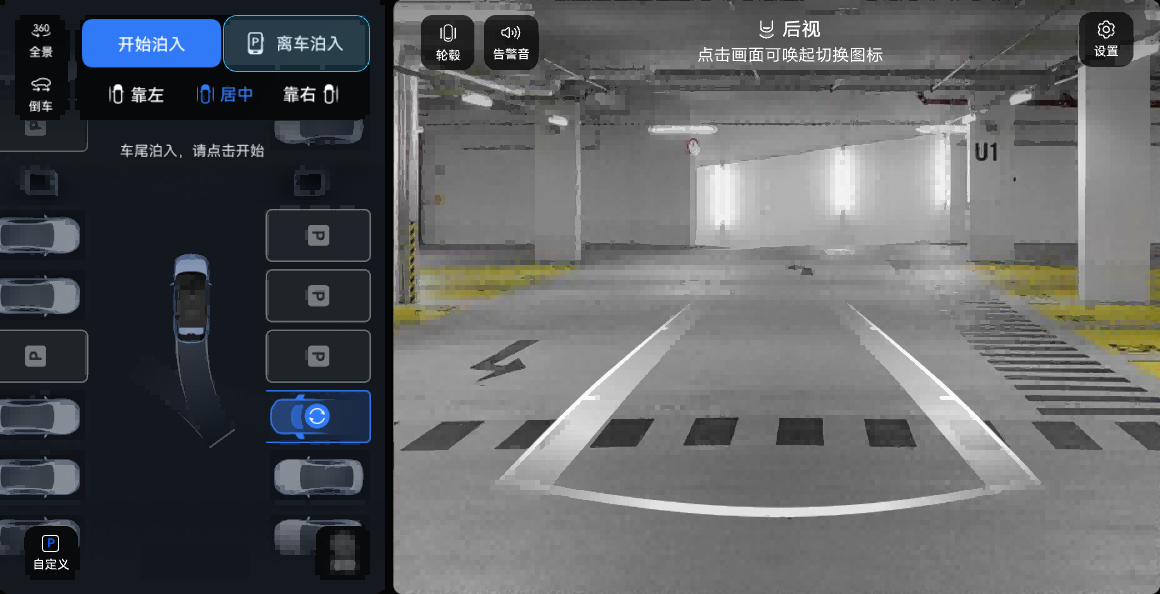 - 点触“离车泊入”后,根据系统提示下车并关好车门,与车辆保持适当安全距离,车辆将直接泊入车位。
