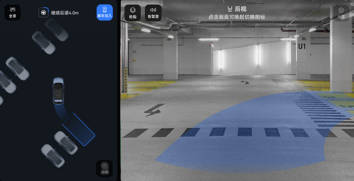 场景四:在暂停循迹倒车时,选择目标车位后,点触“离车泊入”按钮