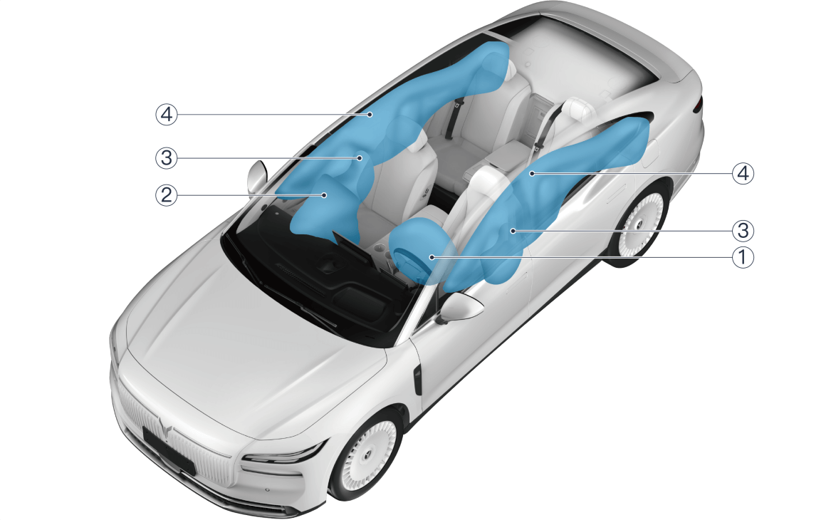 | ④ | 侧气帘式气囊(位于两侧车门上方,A 柱到 C 柱的顶棚区域内) |