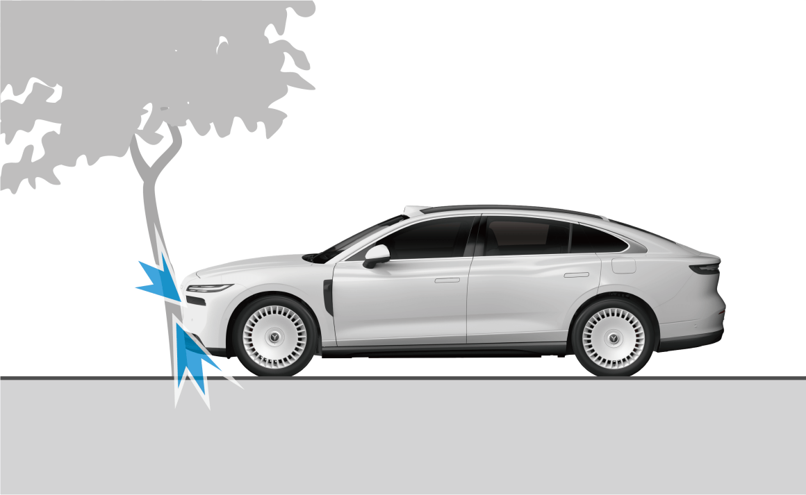 - 正面撞到水泥柱子、树木或其它细长物体。