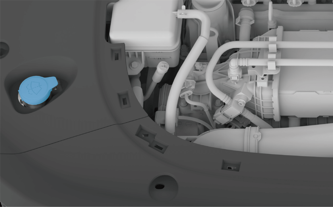 风窗玻璃洗涤液装置设在前机舱内,请定期检查并及时补充风窗玻璃洗涤液。