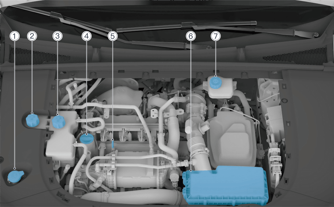 ① 风窗玻璃洗涤液加注口盖