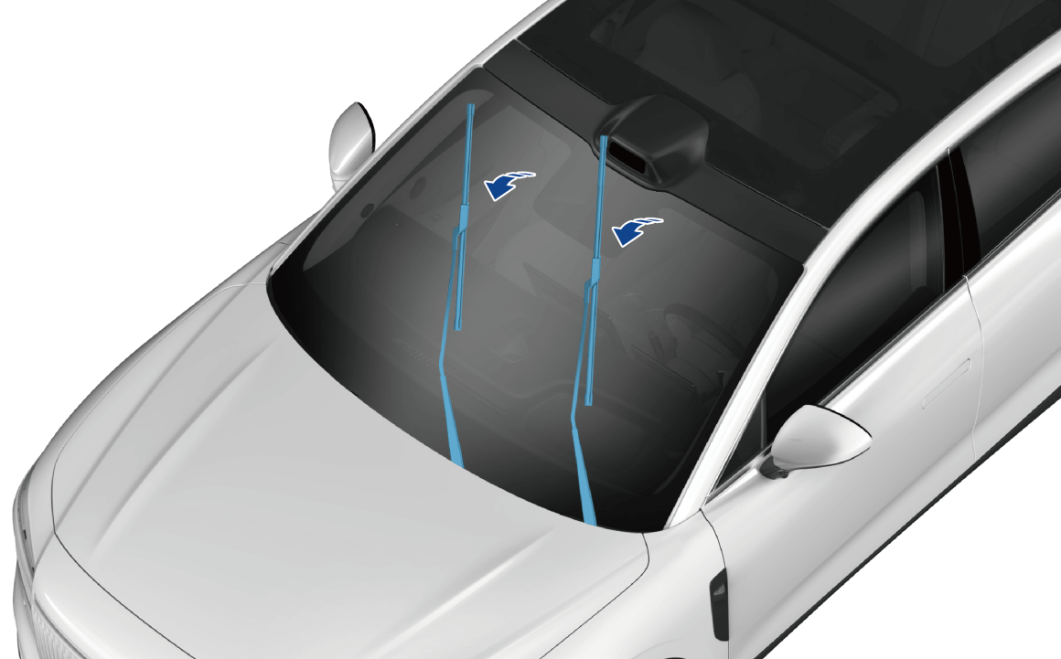 - 打开雨刮维修模式,前雨刮将停留在前风窗玻璃左侧位置;