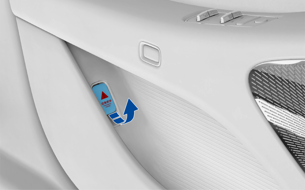位于主驾侧隐藏式门把手内侧(按压主驾侧隐藏式门把手的前端,使门把手微微翘起后可见)。