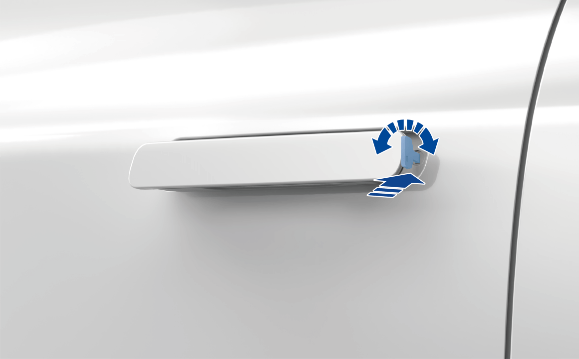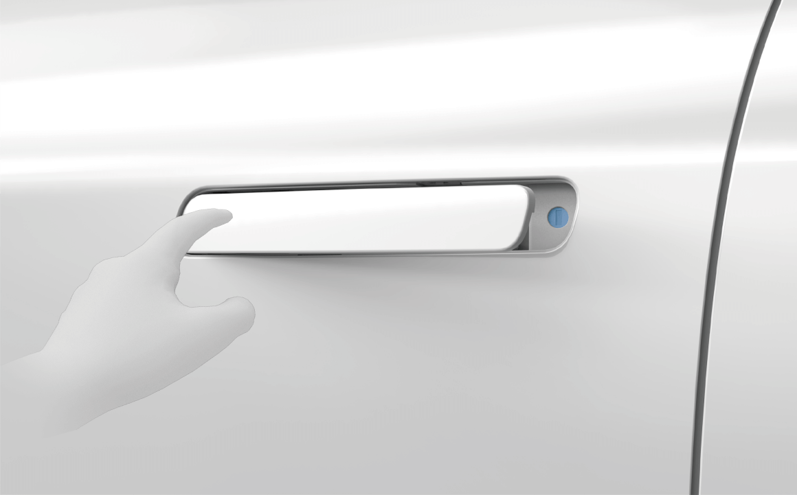 平行拉出隐藏式门把手,使其完全展开,露出锁孔;