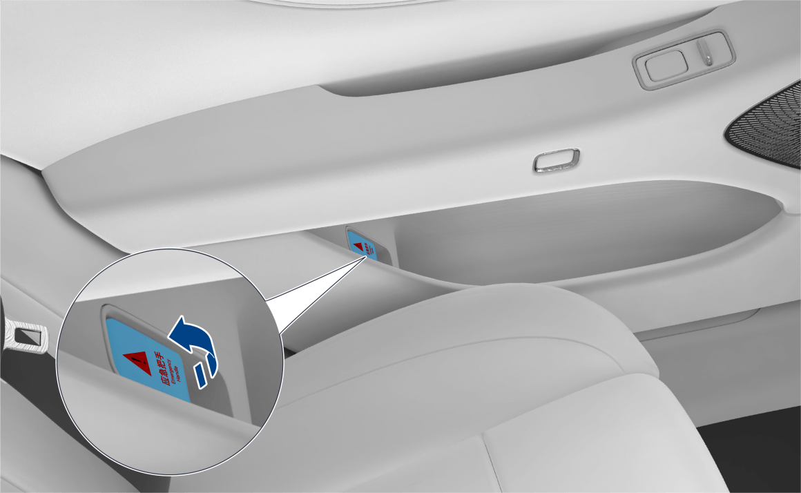 当后车门电控内开按键失效或紧急情况需要开门时,可拉动后车门应急机械拉手,即可打开对应侧后车门。
