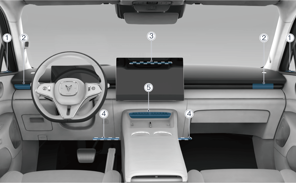 - 上下左右滑动扶手屏空调界面出风区域,可调节出风口风向。