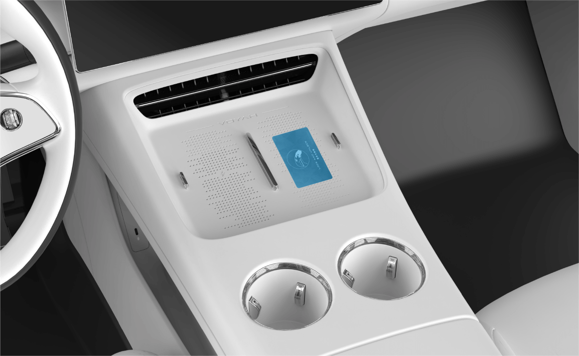 使用 NFC 卡片钥匙解锁上车后,若未使车辆进入 READY 状态,一段时间后钥匙信息会失效。此时需要将 NFC 卡片钥匙放置在识别区域(如下图所示位置),再踩下制动踏板使车辆进入 READY 状态。