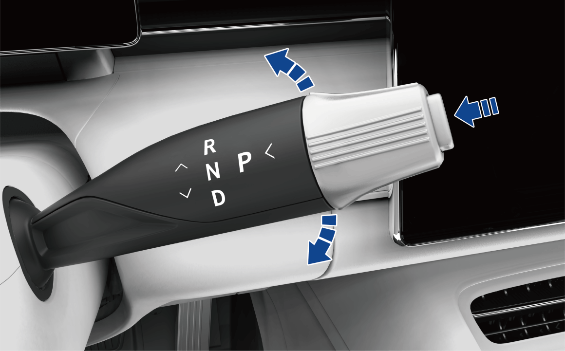 - 车辆在 R 挡时,将换挡杆向下推 1 挡并保持,直至仪表显示 N 挡。