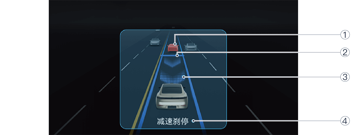 | ④ | 意图说明 | 关于车辆 ADS 意图的实时文字提示。帮助驾驶员更好地理解、预测自车 ADS 行为。 |