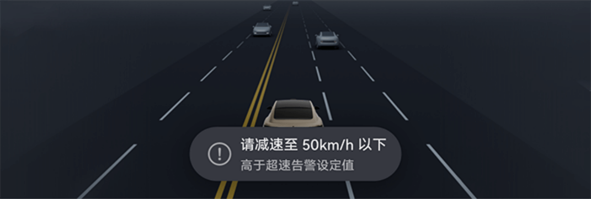 在车速超过设定的告警阈值时发出告警,提醒驾驶员以合理的速度驾驶。使用本功能前请务必完整阅读本章节的全部内容,特别是局限性等涉及车辆及人身财产安全的内容。