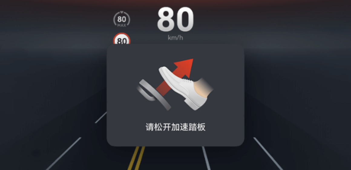 UAP 激活时,仪表屏上会向驾驶员提示“请松开加速踏板”,并伴有“请抬脚”的语音播报。