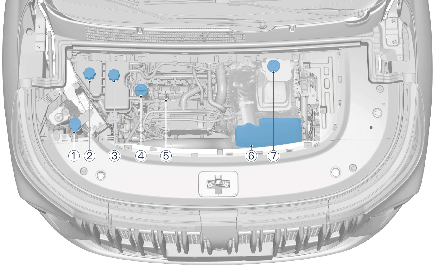 ① 风窗玻璃洗涤液加注口盖