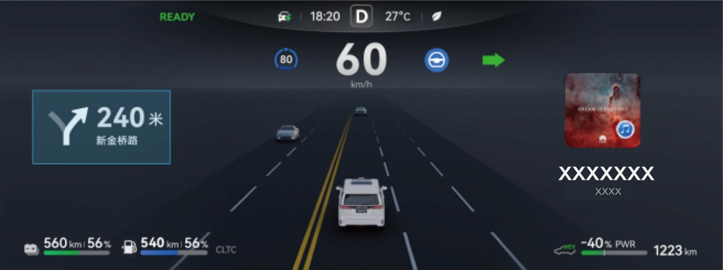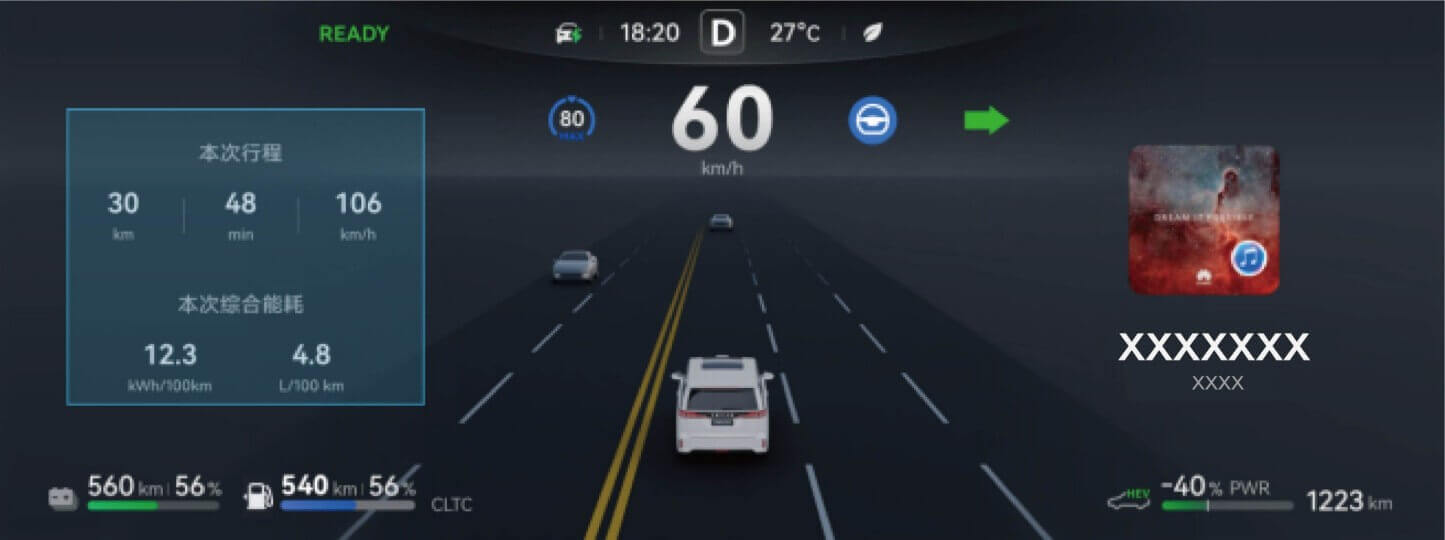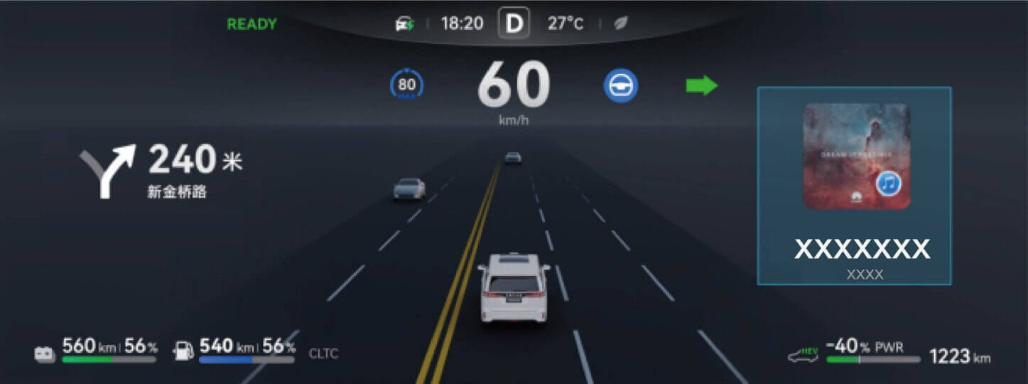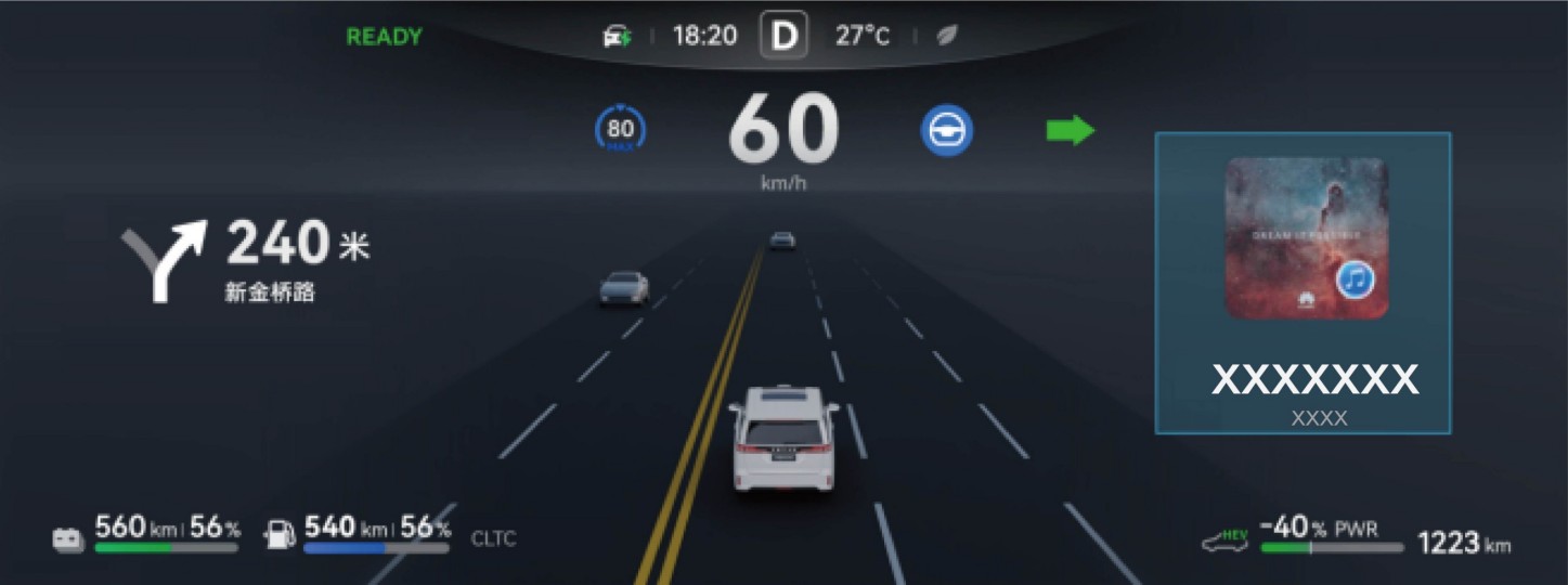 您可以通过组合仪表查看车辆的参数信息、导航信息、里程信息等。