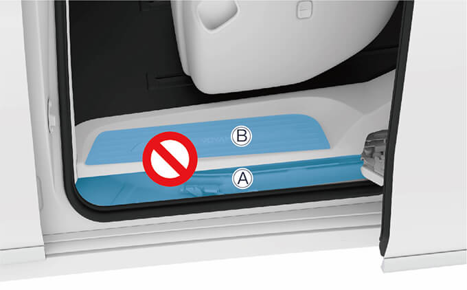 • 区域 B 为电动滑移门门槛踏板,滑移门运动过程中请勿将身体的任何部位或物品放置在此处。