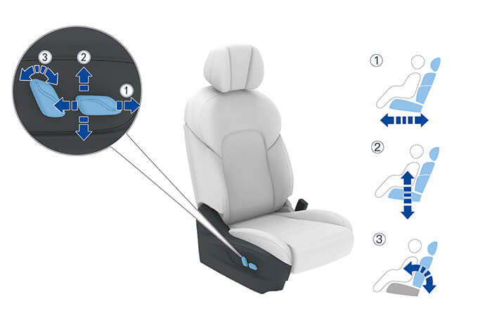 ① 座椅前后调节 ③ 座椅高度调节