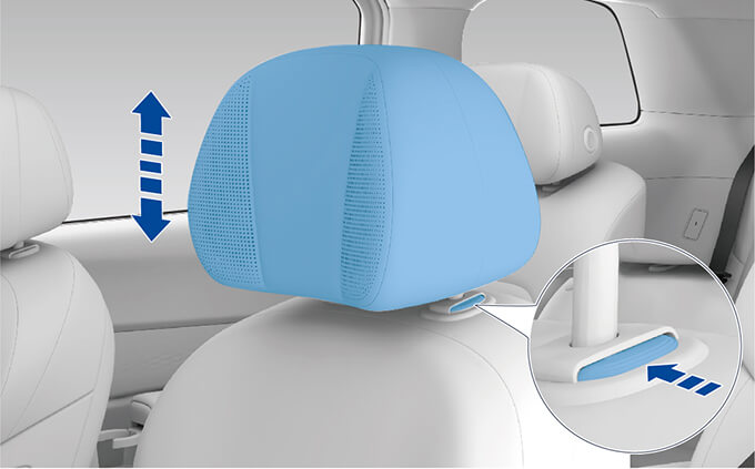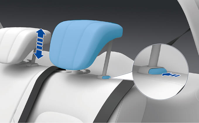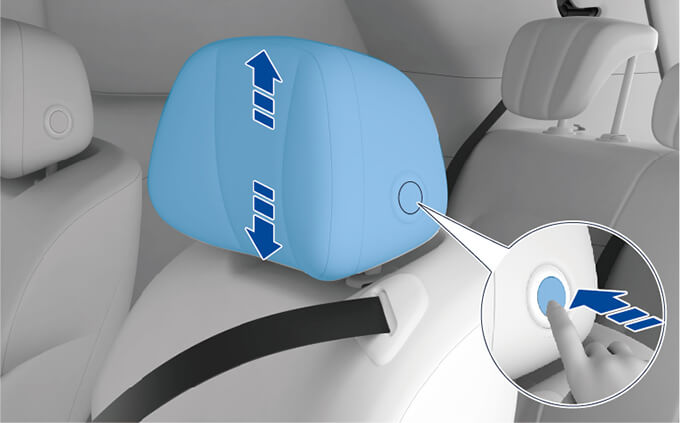 按下二排座椅头枕按键,可调节头枕上、下 位置。