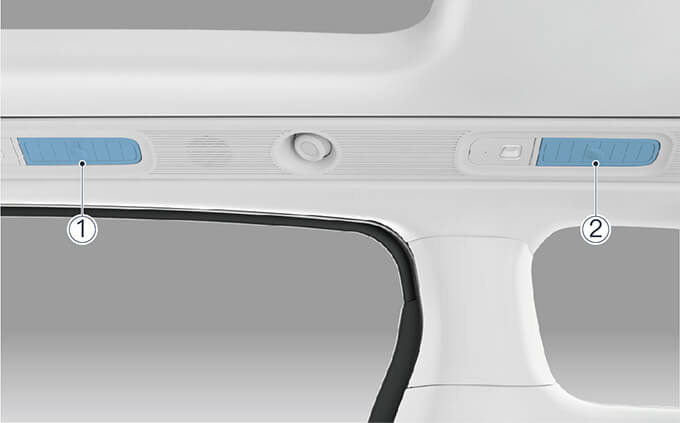 | ① 二排侧出风口 | ② 三排侧出风口 |