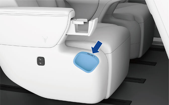 手机无线充电感应区域位于二排座椅外侧,左右二排座椅各一个,无线充电功率均为MAX 50 W 快充。