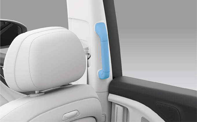 二排扶手位于车辆 B 柱上,乘员可扶稳扶手保持平衡,提升了上下车的便利性,减少跌倒的风险。