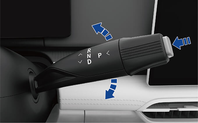 • 车辆在 R 挡时,将换挡杆向下推 1 挡并保持,直至仪表显示 N 挡。