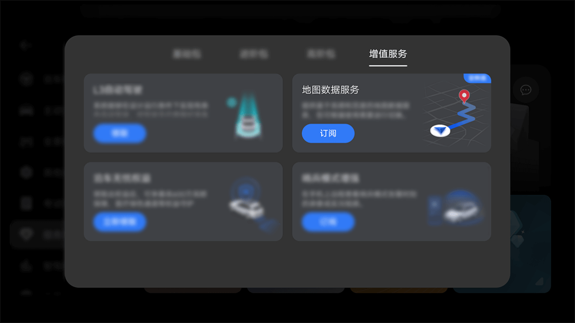 > 辅助驾驶 > 服务订阅 > 增值服务 > 地图数据服务”点触“订阅”按钮,订阅地图数据服务。