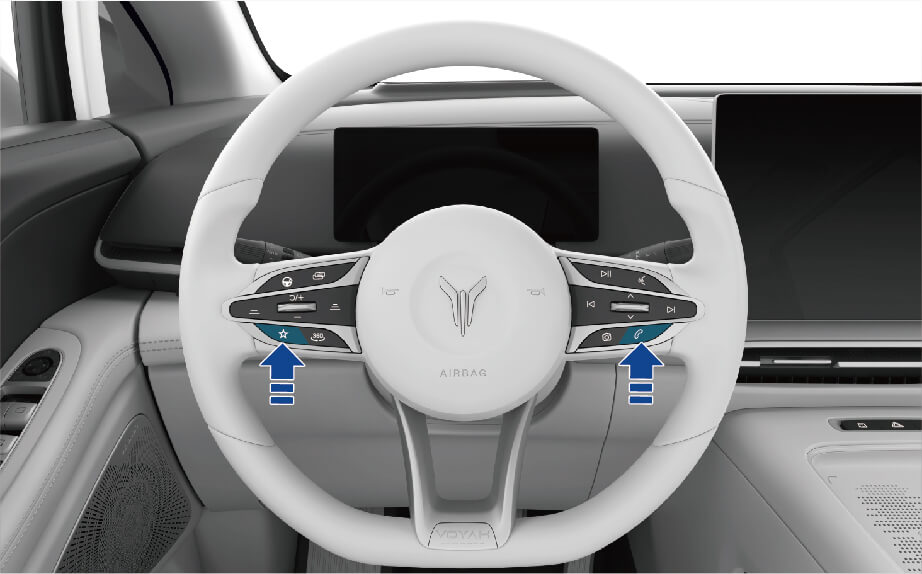 如果 ADS 无响应或出现异常,可将车辆停放至安全地点,挡位切换至 P 挡后,同时长按方向盘左侧的自定义按键和右侧的电话按键直至显示屏黑屏,待中控屏黑屏后松开,ADS 将随中控屏一起重启。