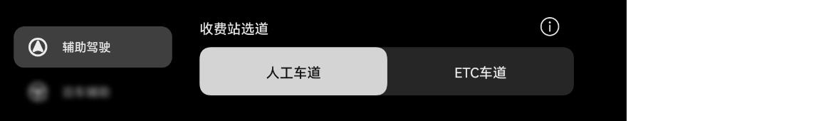 若车辆在即将进入收费站前,仪表屏显示“即将到达收费站,请注意驶入车道”,NCA 可以根据本参数选择优先进入对应类型的车道。可以设置为“人工车道”或“ETC车道”。