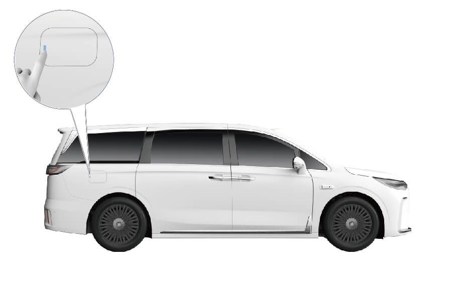 - 为确保安全,车辆静止且处于 P 挡时,才可开启充电盖。