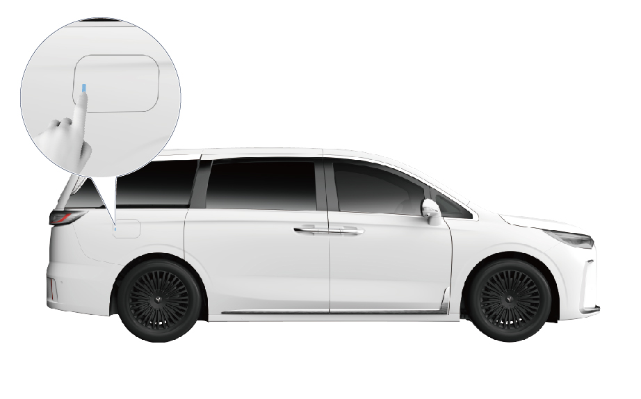 - 为确保安全,车辆静止且处于 P 挡时,才可开启充电盖。
