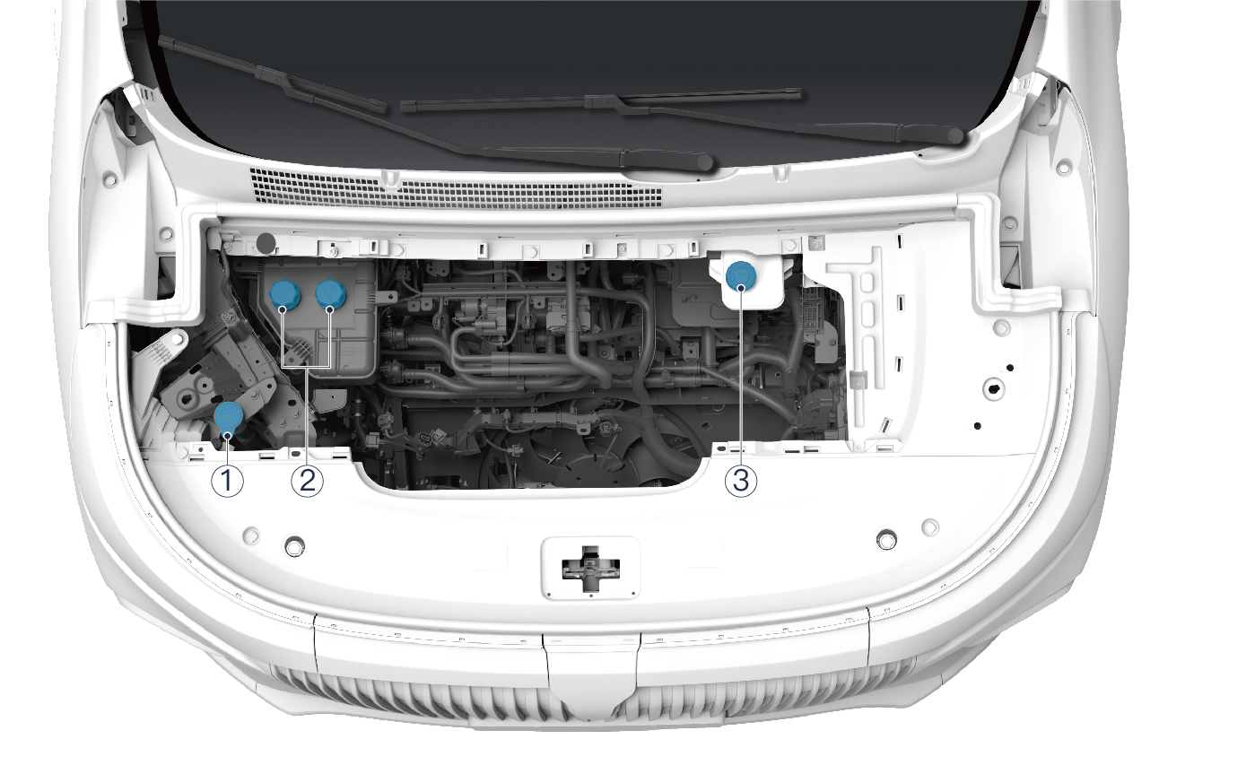 风窗玻璃洗涤液装置设在前机舱内,请定期检查并及时补充风窗玻璃洗涤液。