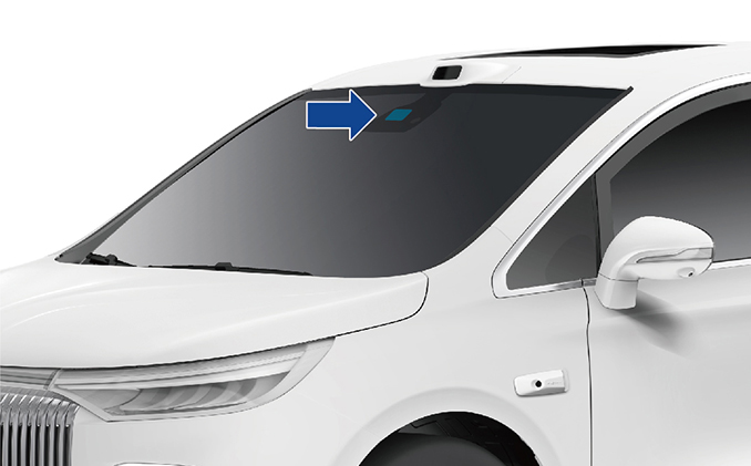 雨量光线传感器位置如上图箭头所示,车辆锁止后,当雨量光线传感器检测到雨水时,车窗和天窗将自动关闭。
