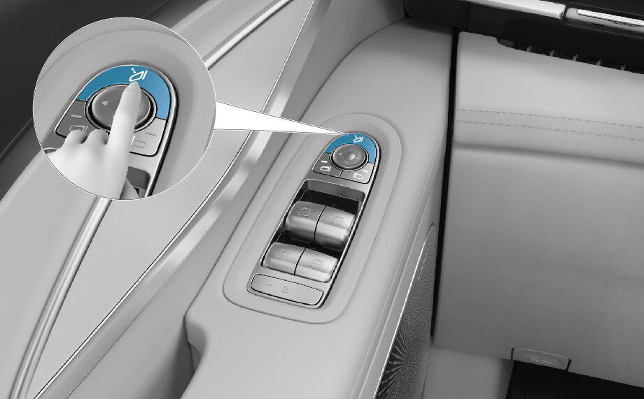 - 按下按键 ②,按前部圆形按钮前、后、左、右方向按键,可调节右侧外后视镜至合适的后视角度。