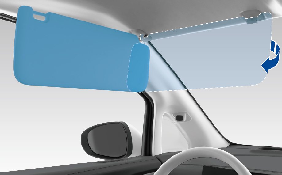驾驶车辆时,如需将遮阳板转至侧面,请您将车辆停稳后再进行操作。
