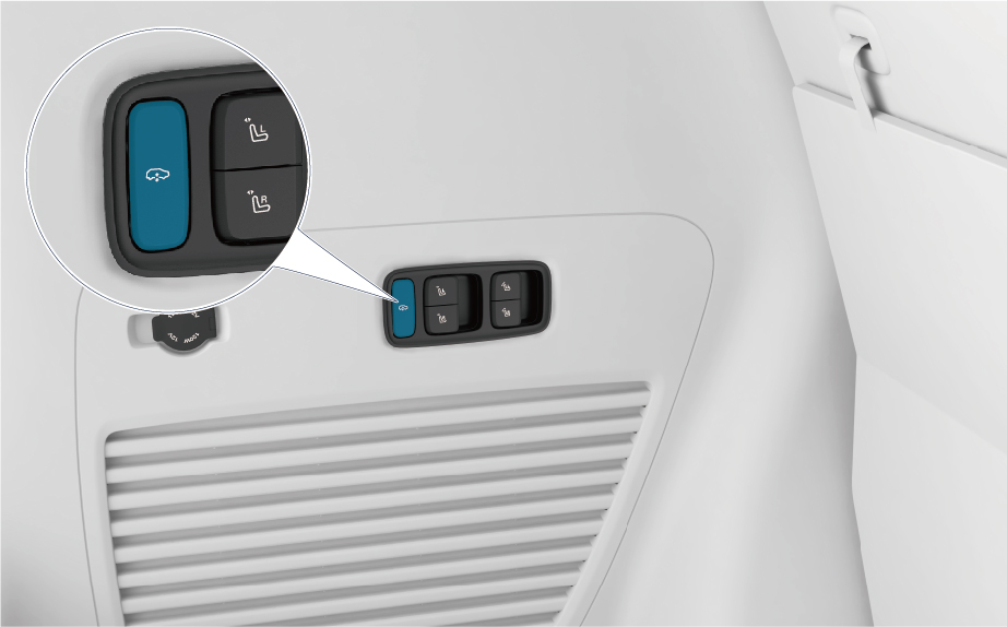 当您开启电动后备箱后,按下后备箱左侧的便捷载物开关,车辆后悬架开始下降同时按键指示灯闪烁,提示您悬架正在调整中,高度降至“最低”后指示灯常亮,此时您可以按需放置或取出物品。操作完成后再次按下便捷载物开关,车辆后悬架高度上升,恢复至预设高度指示灯熄灭。