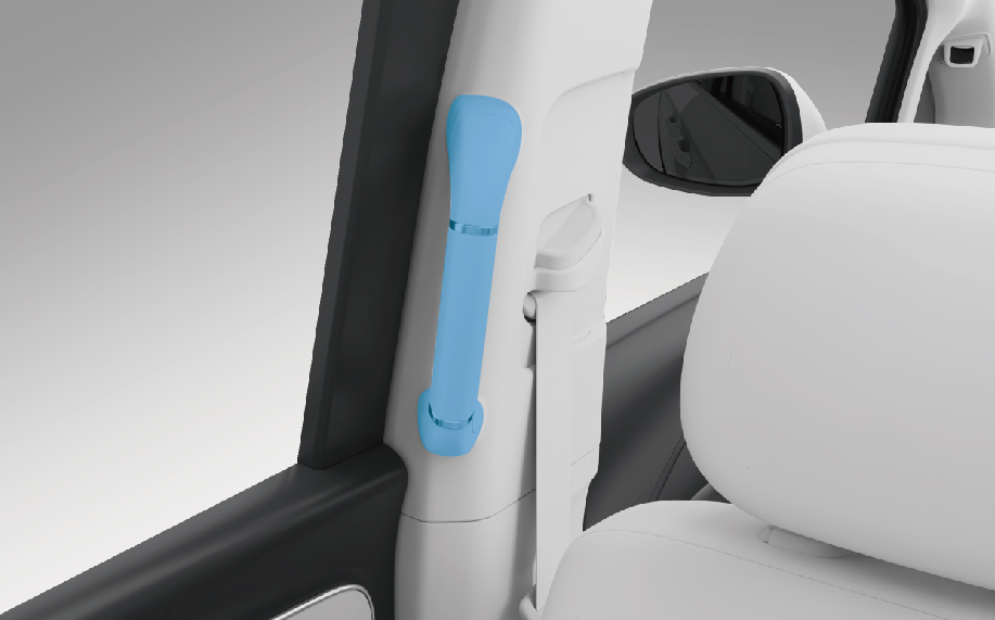 二排扶手位于车辆 B 柱上,乘员可扶稳扶手保持平衡,提升了上下车的便利性,减少跌倒的风险。