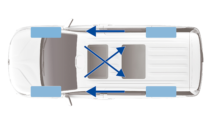 轮胎使用寿命取决于胎压、驾驶习惯。建议每行驶 10000 km 前后车轮交叉换位一次,车轮换位的间隔时间,可能会因驾驶习惯和路面状况的不同而变化。