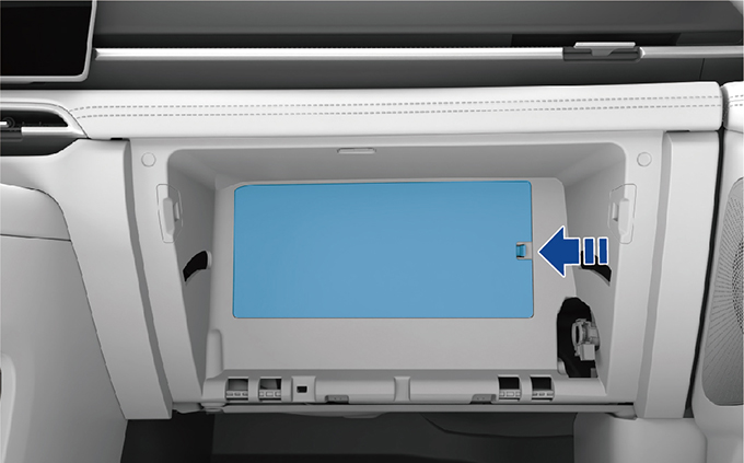 - 打开手套箱,用力按压手套箱两侧的限位卡,将手套箱开启到最低位;